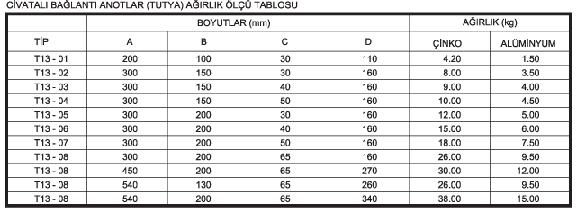 Kaynaksız civata ile montaj yapılabilen anot çeşididir. Standart dışı bütün kalıp, ölçü ve ağırlıklarda üretilir.